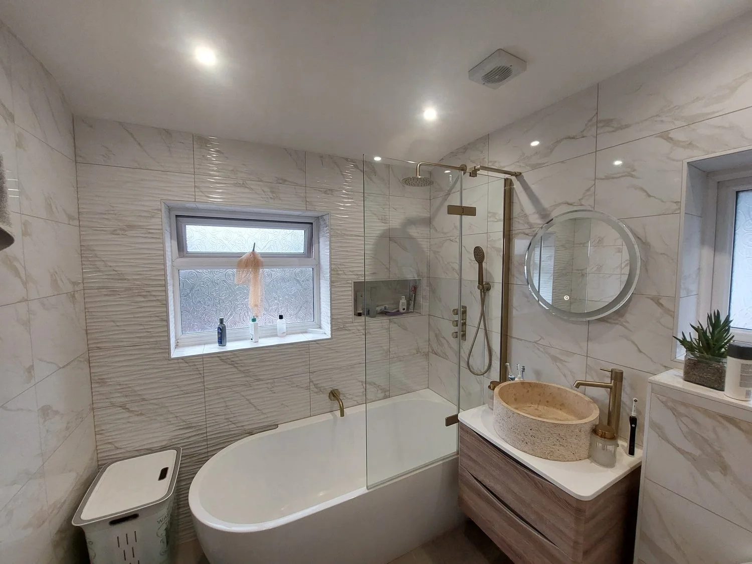 A well-designed bathroom can add value and serenity to your home. At FR Constructions, we deliver bespoke bathroom renovations that blend practicality with elegant finishes. Whether you’re looking to upgrade a small en-suite or completely transform a main family bathroom, our team works with precision and care to achieve stunning results. Explore the gallery below to see examples of our bathroom renovation work, showcasing modern fittings, smart layouts, and high-quality craftsmanship.